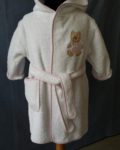 Accappatoio bambino con cappuccio realizzato con spugna da 450 gr/m2 98% cotone 2% poliestere per trattenere il riccio di cotone ed evitare che si tirino i fili.